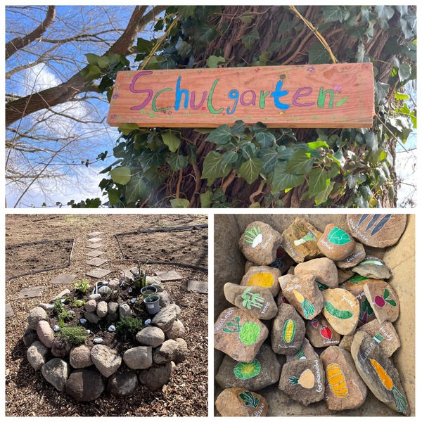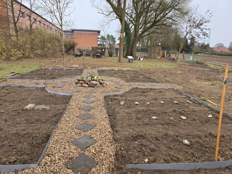 - Der neue Schulgarten: Aus einer grauen Fläche wurde eine grüne Oase. Hier können wir künftig biologische Vielfalt hautnah erleben und selbst Hand anlegen.