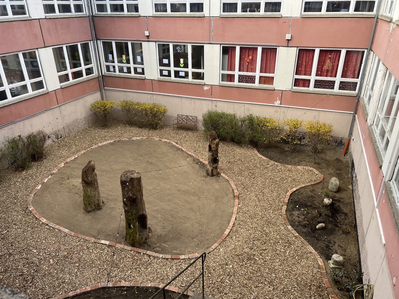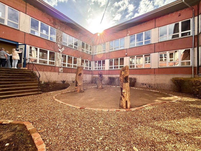 - Das „Grüne Klassenzimmer“: Durch die umfassende Erneuerung unseres Innenhofes haben wir nun einen Lernort unter freiem Himmel geschaffen. Unterricht an der frischen Luft? Ab sofort kein Problem mehr!