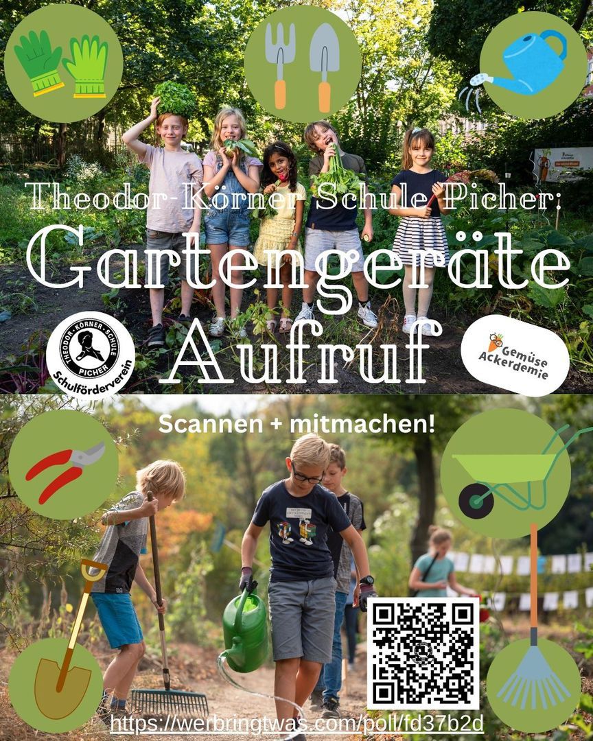 Zusammen mit dem Programm der Gemüse ACKERDEMIE werden wir jetzt eine Ackerschule - das heißt wir erschaffen bald einen Schulgarten! Dafür benötigen wir eure Unterstützung und hoffen auf viele Spenden- vom Spaten bis zur Gießkanne. Einfach unter Wer bringt was - Kostenlose Umfragen für jeden Anlass mitmachen und etwas aussuchen, was ihr zuhause übrighabt oder für uns besorgen würdet!