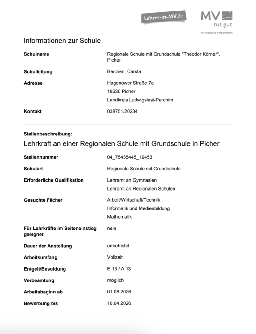 Theodor-Körner-Schule Hagenower Str. 7a 19230 Picher